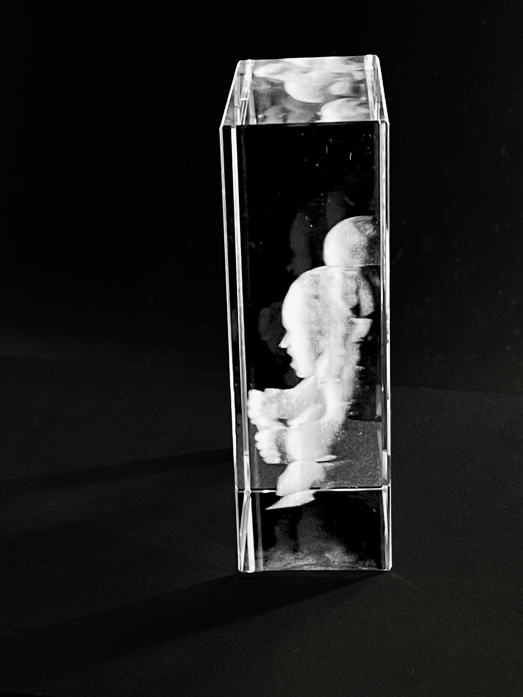 Forventningsfulle foreldre kan også glede seg over å se bildet av den lille i magen, perfekt gravert i vår krystall. La oss hjelpe deg med å bevare disse spesielle øyeblikkene med en 3D- eller 2D-gravering.
