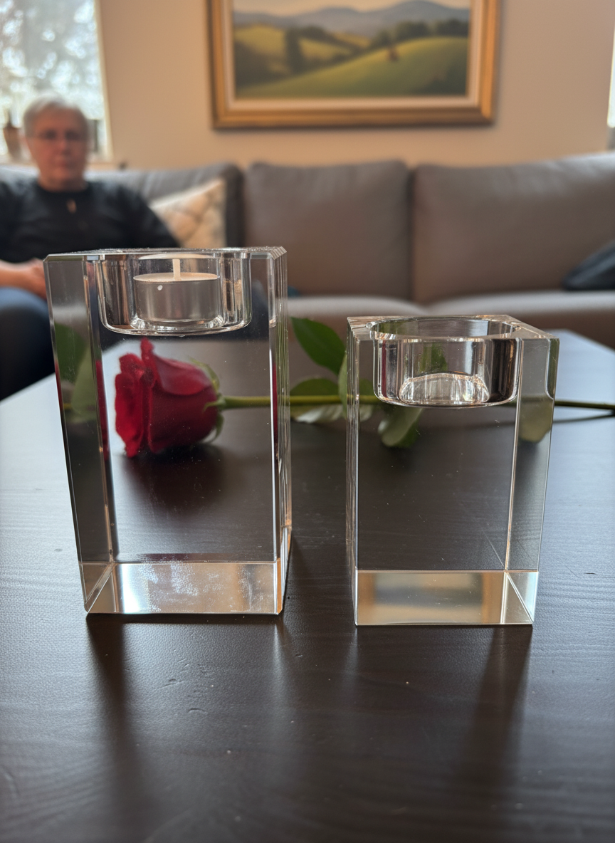 Det som gjør denne telysholderen ekstra spesiell, er at du kan få ditt helt eget bilde inngravert inne i krystallen. Enten du ønsker et minne av hunden, katten, kjæresten, mamma, pappa, bestemor, bestefar – eller et annet øyeblikk som betyr noe – blir det et personlig kunstverk som varer.