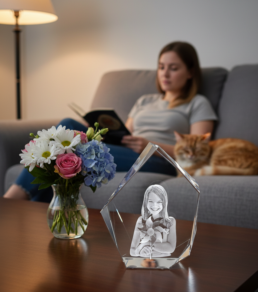 - Krystallklar kube som fanger essensen av dine minner