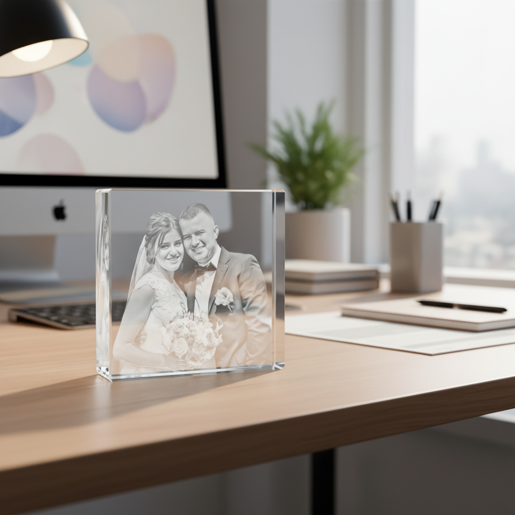 Skap uforglemmelige minner som varer livet ut med våre enestående Krystallkuber. Disse vakre kunstverkene blir ditt personlige lerret, hvor du kan forevige de mest betydningsfulle øyeblikkene i livet ditt. Enten det er landskapets skjønnhet, din favorittkjøretøy, nære vennskap eller din elskede familie – valget er ditt.